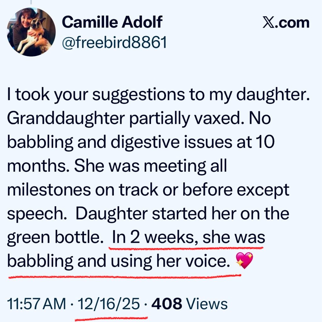 This cellular detox has proven over and over again to help toddlers, children, teens and even adults function better in every possible way, including speech improvement, gut improvement, skin improvement, sleep improvement, immune improvement, and so, so much more. SCROLL FOR TESTIMONIALS